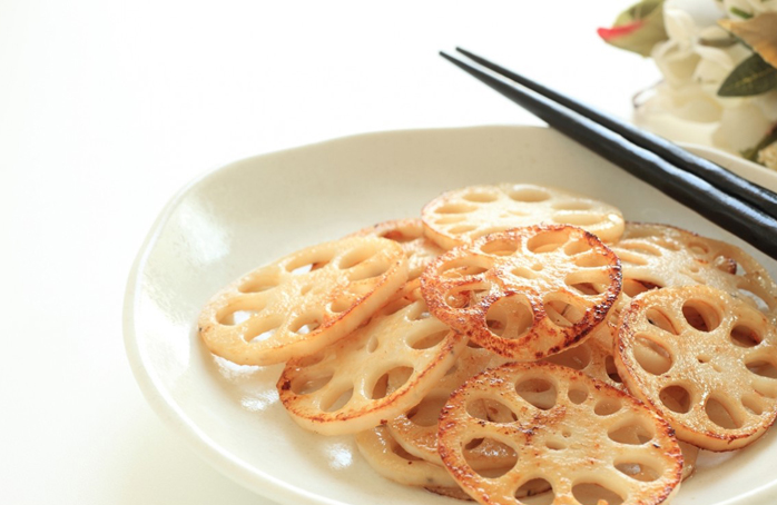 뮤신은 끈적끈적하고 체내에 들어온 탄수화물과 당분에 달라붙어 당분해의 속도를 억제하기 때문에 혈당 조절이 필요한 당뇨병 환자에게 매우 도움이 돼요. 연근에는 섬유질이 들어 있어 체내 나쁜 콜레스테롤 수치를 최대한 낮추는 역할을 합니다.