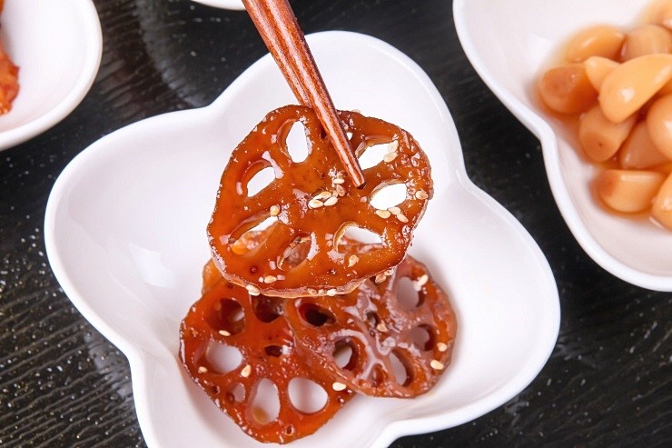 연근에는 뮤신이라는 끈적끈적한 물질이 있는데 소화기 계통을 보호하고 위산 분비를 효과적으로 조절해서 위장 질환 완화에 도움을 준다고 해요. 소화불량 등 질환이 있을 때는 연근을 먹으면 좋고 속이 허약하거나 속이 자주 타는 경우 연근을 먹으면 도움이 됩니다.