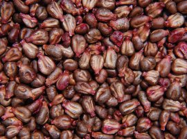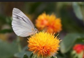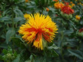열매는 길이가 약 6mm이고 흰색이며 광택이 있으며 노란색 또는 붉은 물을 염색하는 데 사용되며 약용으로도 사용돼요. 홍화씨는 칼슘이 풍부해 관절염에 좋고 혈액 정체를 완화하는 것으로 알려져 있습니다.